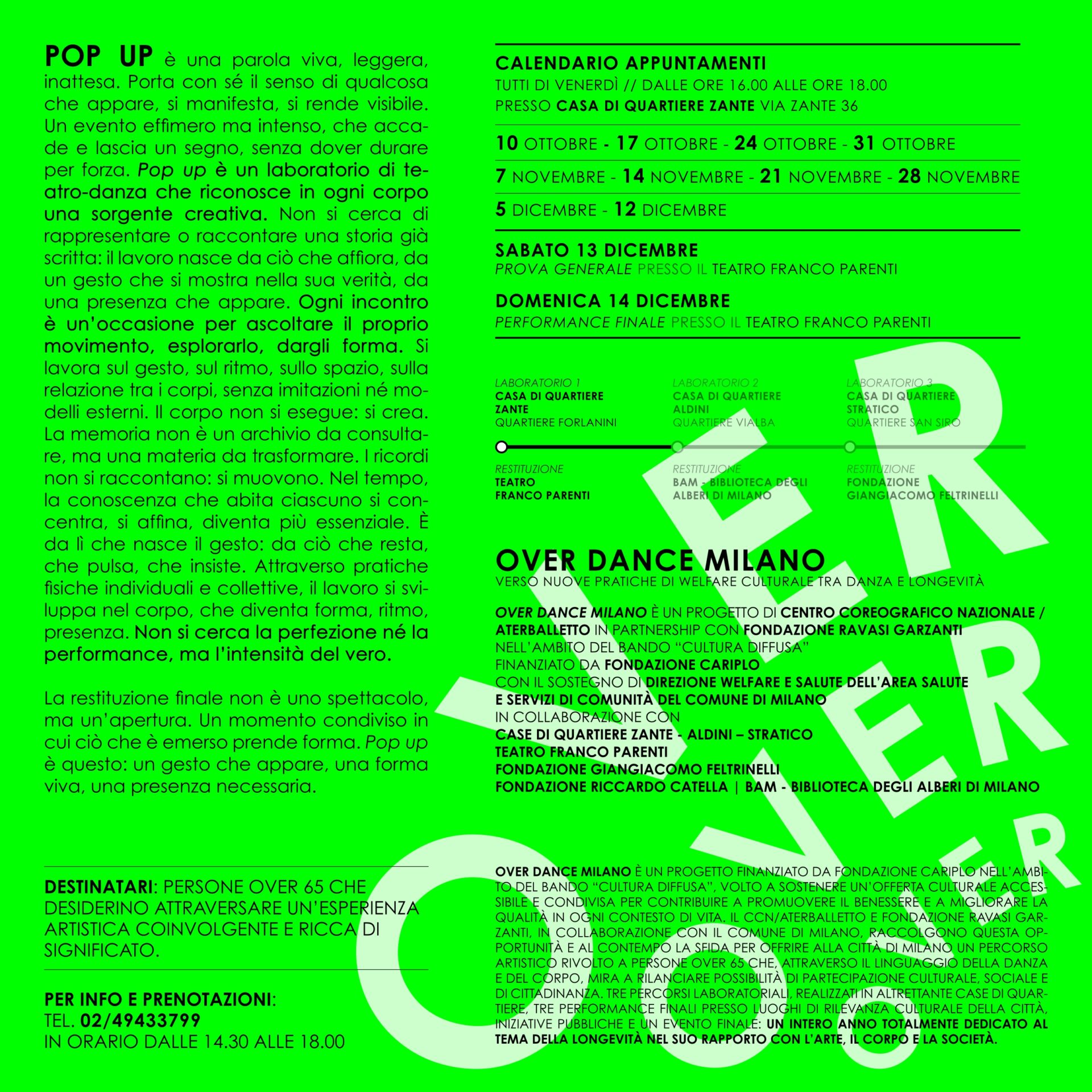 Over Dance Milano è un progetto finanziato da Fondazione Cariplo nell’ambito del bando “Cultura Diffusa”, volto a sostenere un’offerta culturale, accessibile e condivisa per contribuire a promuovere il benessere e a migliorare la qualità in ogni contesto di vita.