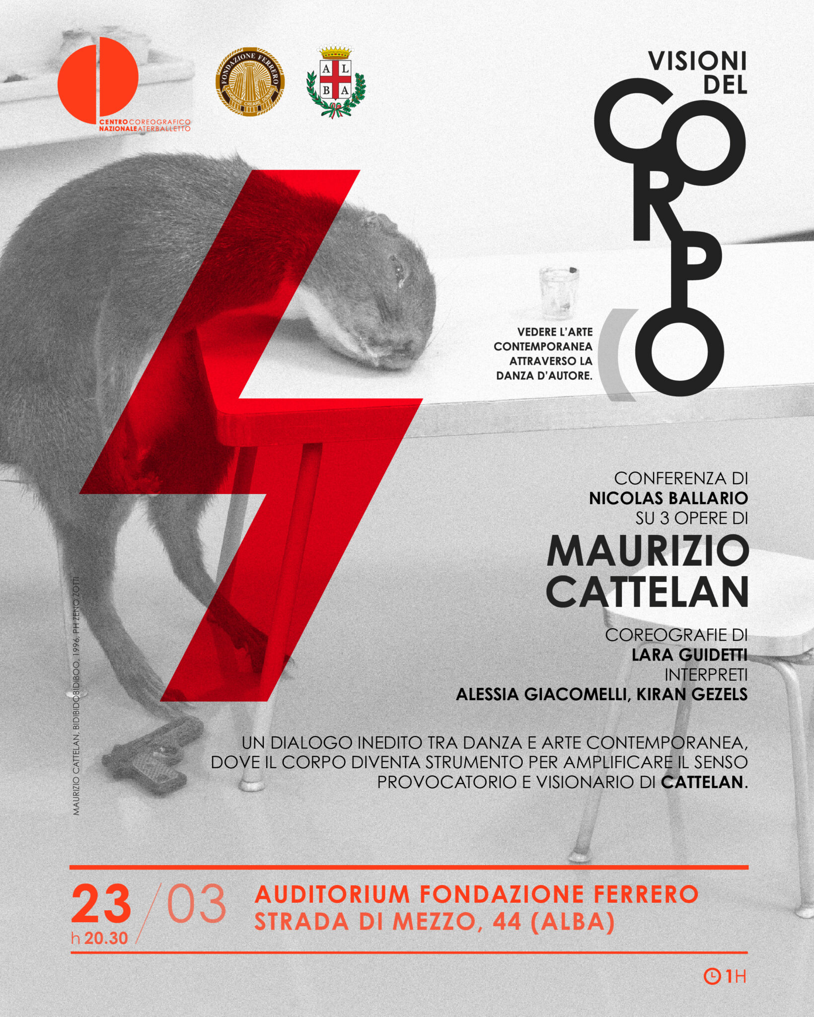 Protagonisti della serata saranno Nicolas Ballario, giornalista e divulgatore culturale, la coreografa Lara Guidetti, i danzatori del CCN/Aterballetto Alessia Giacomelli e Kiran Gezels in un lavoro che omaggia Maurizio Cattelan.